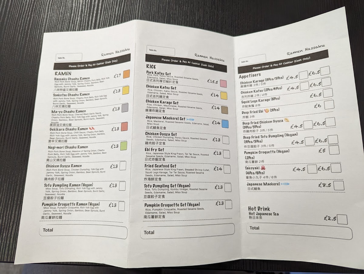 Ramen Hassaku, located at 42 Derby Rd, Stapleford, Nottingham NG9 7AA, is a gem for ramen lovers looking for authentic Japanese flavors with a cozy atmosphere. Known for its carefully crafted dishes and unique approach, the Ramen Hassaku menu offers an impressive selection of traditional and modern ramen styles that will satisfy any craving.